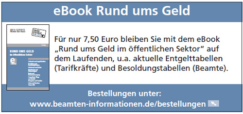Exklusivangebot zum Vorzugpreis von 22,50 Euro inkl. Versand & MwSt. Der INFO-SERVICE Öffentliche Dienst/Beamte informiert seit 1997 - also seit fast 30 Jahren - die Beschäftigten des öffentlichen Dienstes zu wichtigen Themen rund um Einkommen und Arbeitsbedingungen, u.a. der-oeffentliche-sektor.de). Insgesamt sind auf dem USB-Stick (32 GB) acht Bücher aufgespielt, davon drei Ratgeber Wissenswertes für Beamtinnen und Beamte, Beamtenversorgungsrecht in Bund und Ländern, Beihilferecht.in Bund und Ländern. Ebenfalls auf dem USB-Stick: sind fünf eBooks: Nebentätigkeitsrecht, Tarifrecht (TVöD, TV-L), Berufseinstieg im öff. Dienst, Rund ums Geld im öff. Sektor und Frauen im öffentlichen Dienst >>>Hier zum Bestellformular |